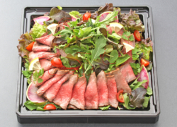 近江牛のローストビーフをメインに様々なお野菜を使ったサラダ